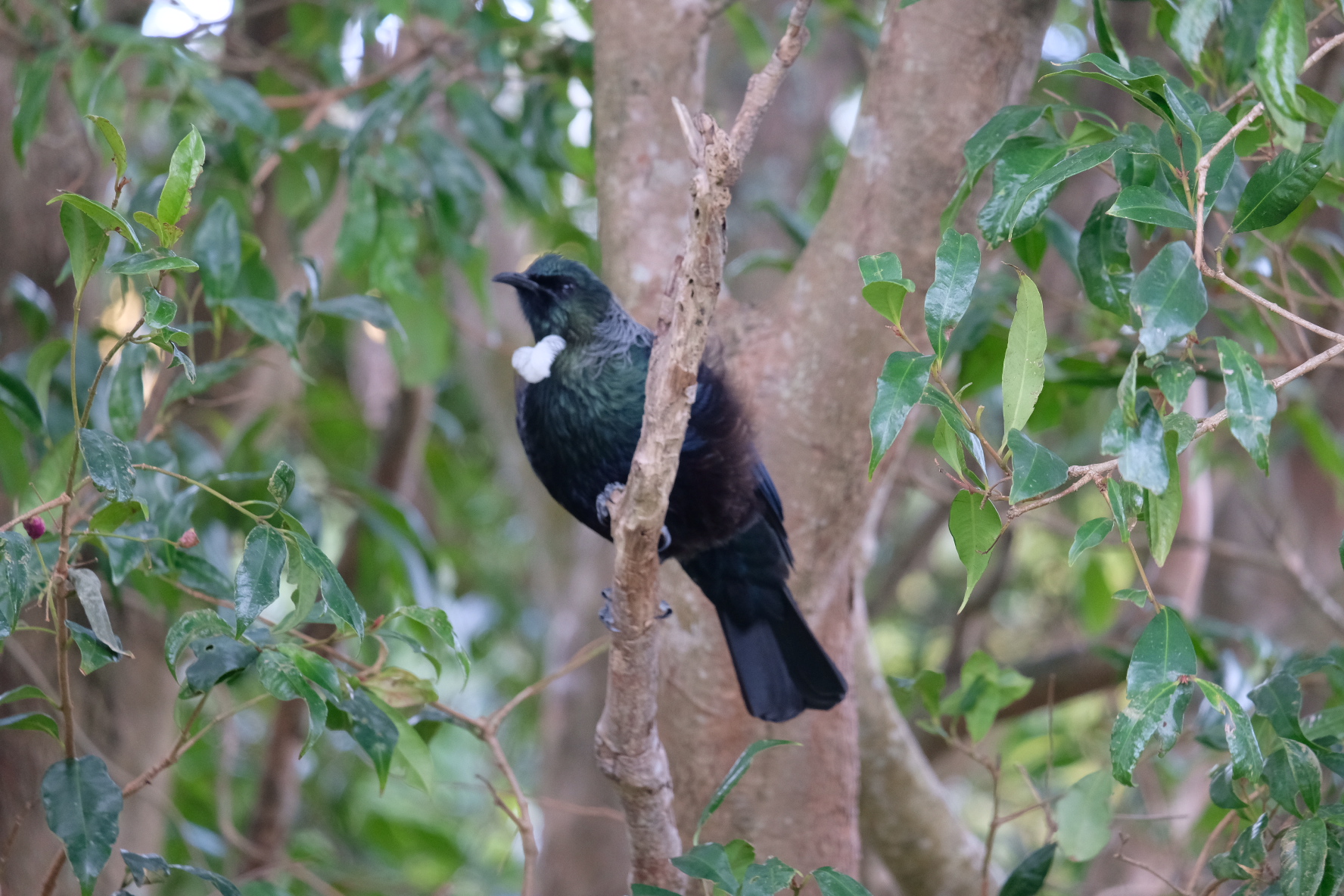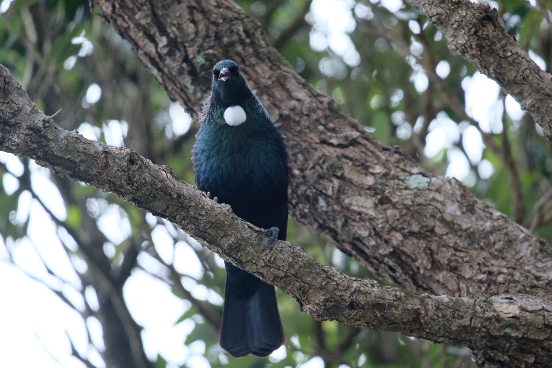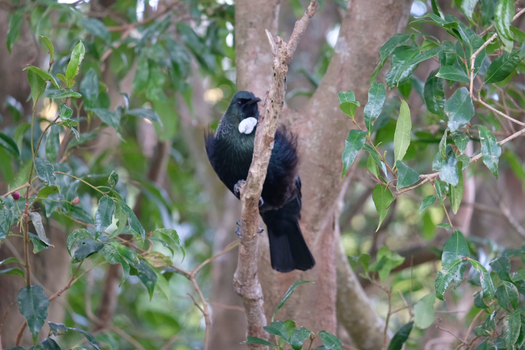 This Tui couple popped round today at lunch time to visit our Pohutukawa tree and make a bunch of noise.